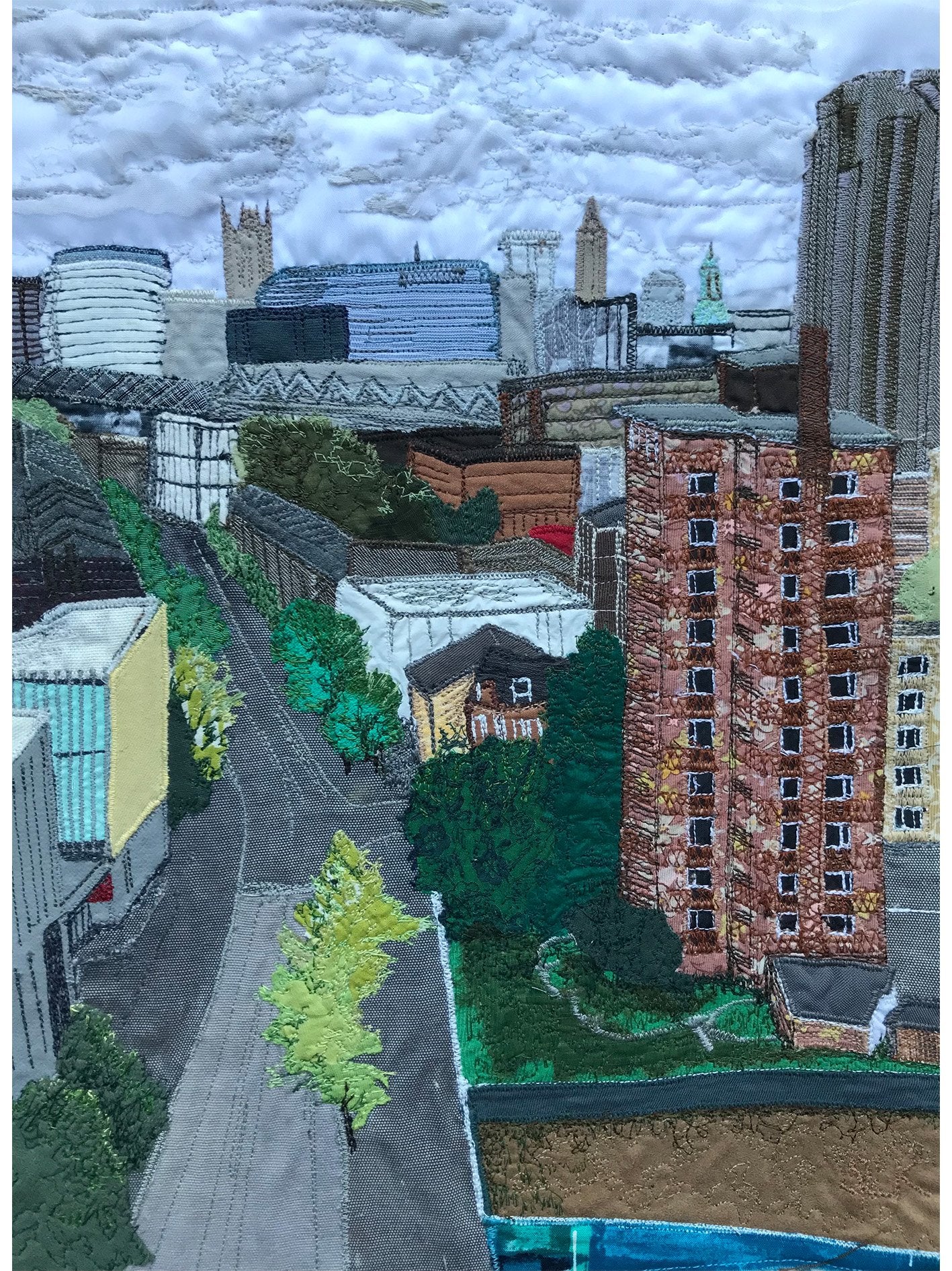 Medium: Textile (Scrap Fabric and Sewing Machine Embroidery)